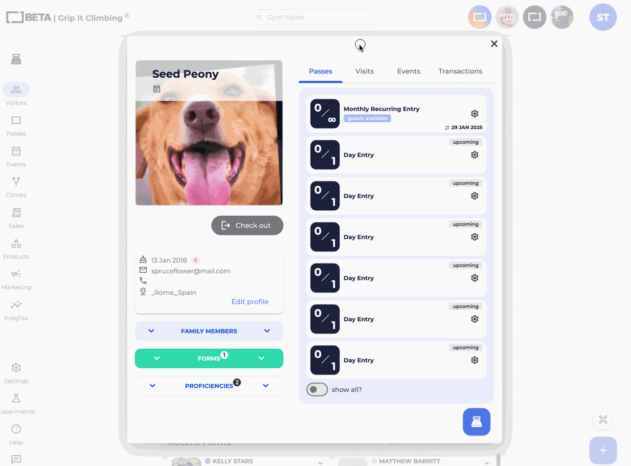 Visitor Profiles in BETA serve as a central hub for managing individuals’ information, ensuring a smooth and organized experience for both climbers and staff. From tracking passes to handling subscriptions, Visitor Profiles streamline the management of all relevant details.