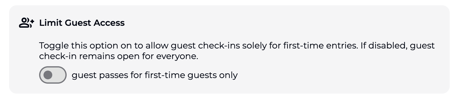 This option allows passes for minors to include check-in privileges for one or more accompanying guests, ensuring easy access for adult supervisors.