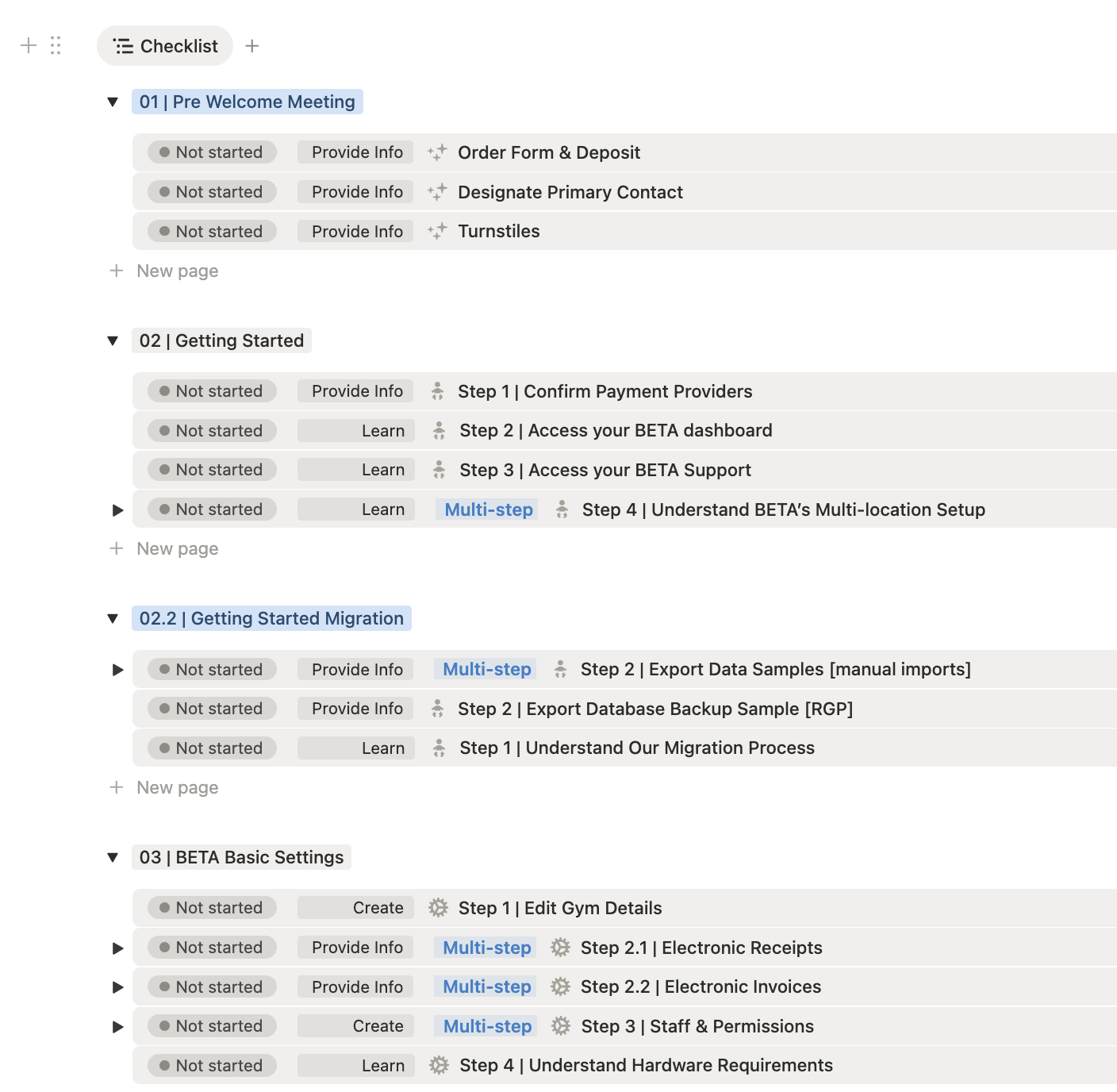 For new gyms, we also offer a split onboarding process - starting with a quick setup to launch pre-sales, followed by the remaining steps closer to your official opening date. See our dedicated guide: