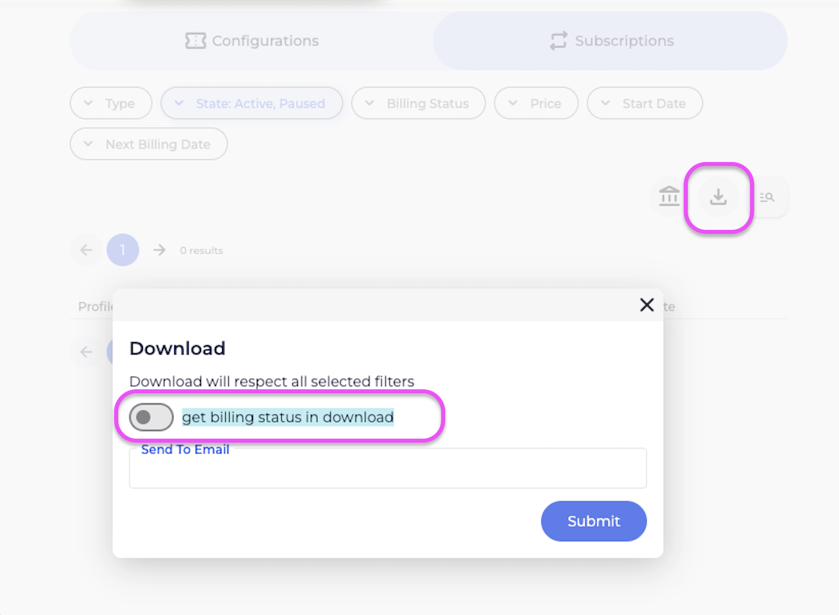 If you wish to include the subscription holder without a payment method in the report, ensure to enable “get billing status in download”. This will retrieve the subscribers Payment method status.