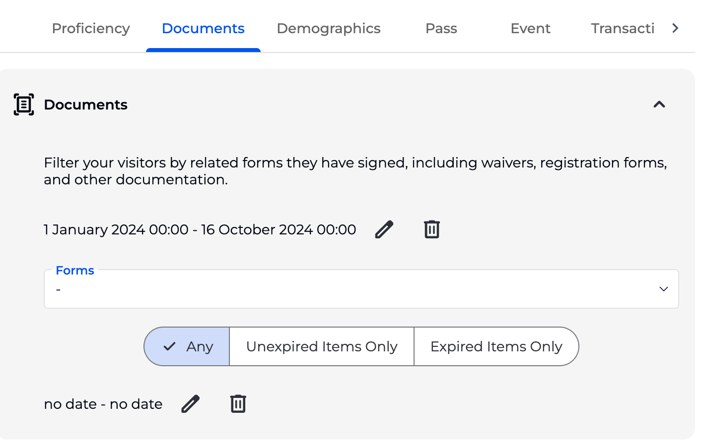 Example is profiles who had made a purchase through a succeeded subscription payment (ie had a running membership/subscription) on their account (not necessarily the pass holder being issued the entry type) during the year of 2024, and not 2025.