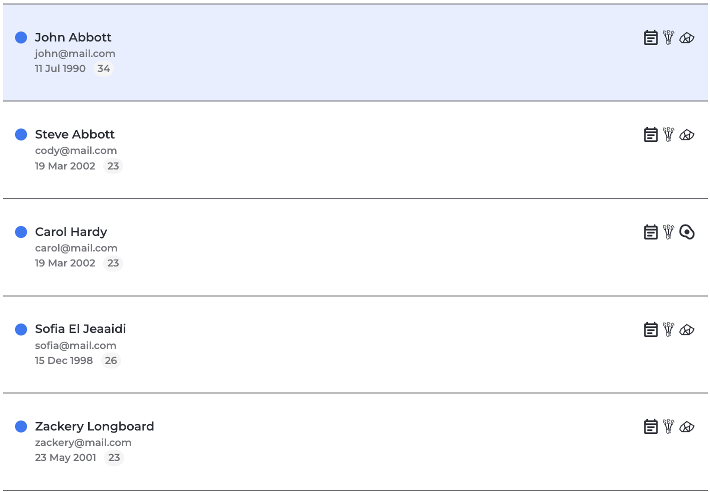Example is profiles who have booked onto the Event = Bouldering Party, in all time