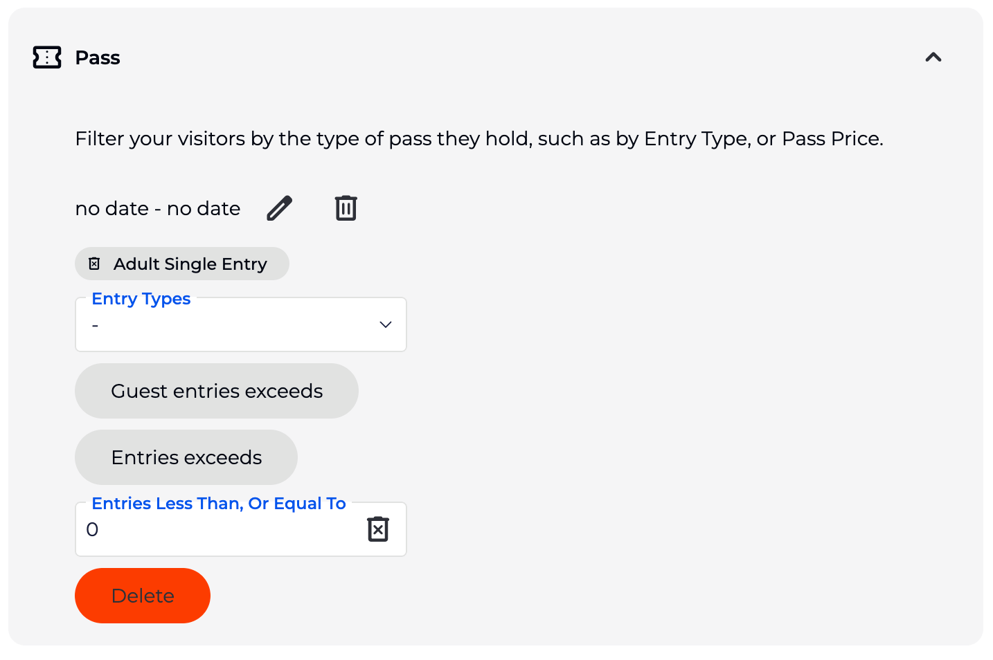 Type of entry: Pass, Guest, Non-guest (passholder)