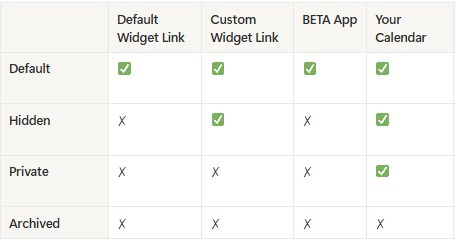 Default: These templates will be visible on your calendar, and in the widget and in the app.