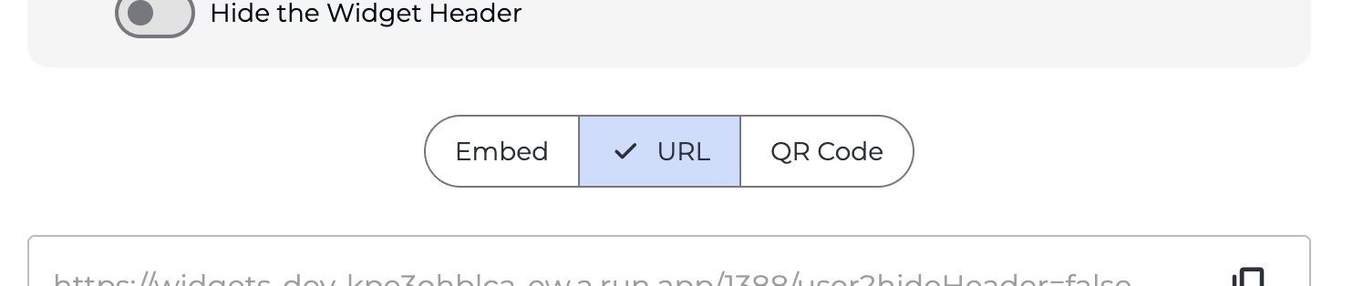 URL - select this if you would like to generate a widget URL, use to send to your customers, for example via email.