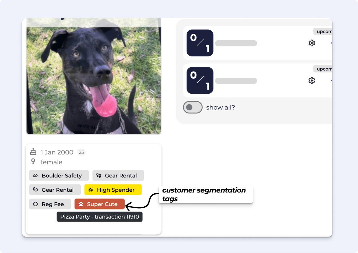 Easily manage climber tags and proficiencies right from profiles. Apply existing tags or create custom ones to track everything from safety checks and supervisor roles to registration fees and gear rentals.