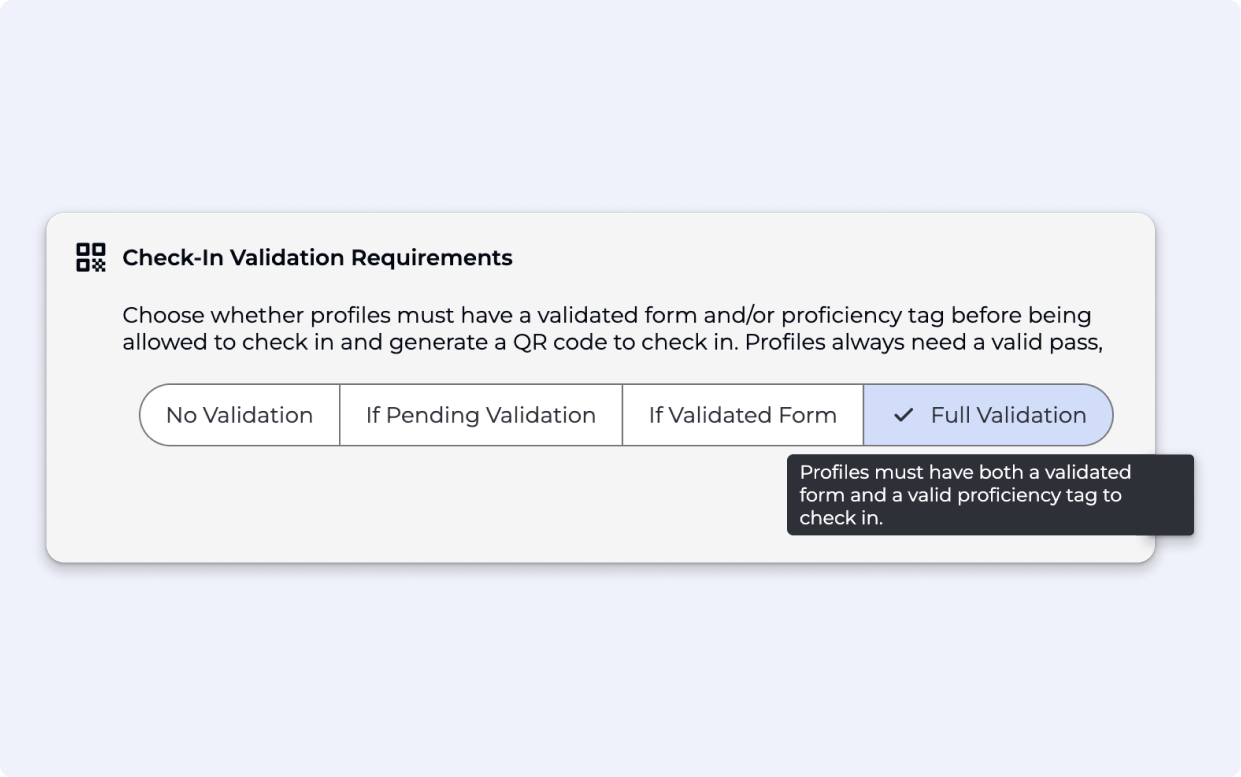 Full Validation: A proficiency & valid form must be associated with the visitor