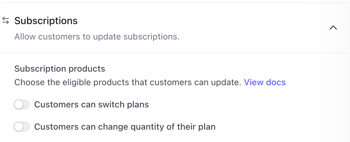 ⤷ Disable allowing customers to update their subscription, as this will not communicate back with BETA