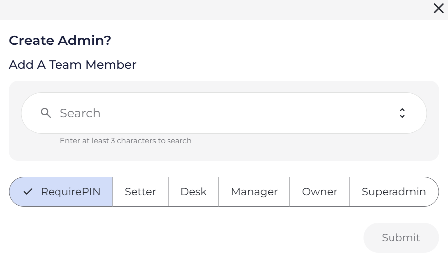 Require PIN: This account makes PIN entry necessary for any actions performed while logged in it. Depending on the action that needs to be completed, desk, manager or owner pin would be required.