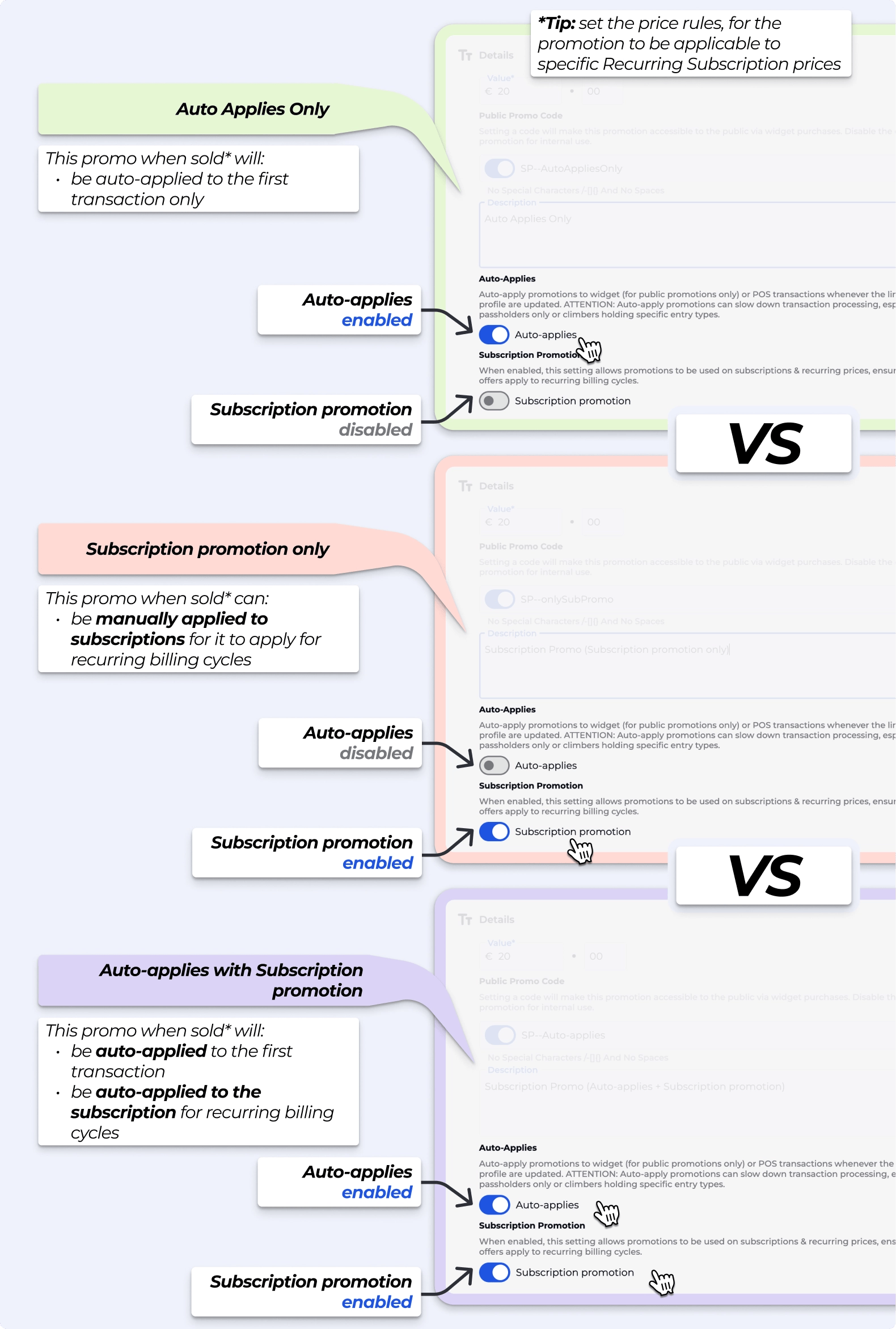 This update will allow you to set subscription promotions to auto-apply continuously. Any subscription matching the promotion rules will have the discount applied automatically every billing cycle — no manual action required each time.