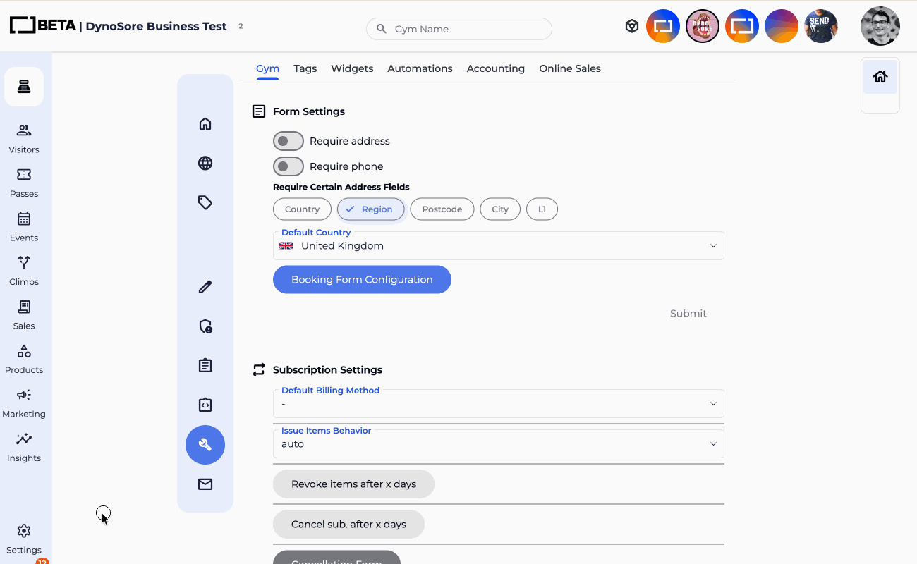 Example: A member's subscription runs 2 Apr – 2 May (monthly). Staff freeze the subscription on 15 April due to an injury. Pass access stops immediately. No charge is made on 2 May. When the freeze is lifted on 1 May (17 days frozen), billing resumes and the next billing date is pushed forward by 17 days — the next bill falls on 19 May, not 2 May.